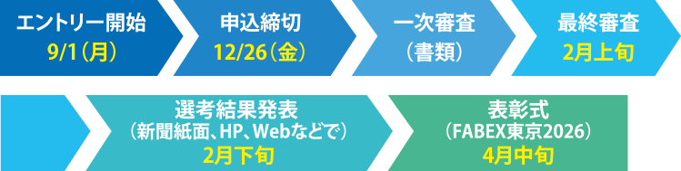 - ② 部門ごとに「業務用」「市販用」各1品まで応募可能です(同一品の毎年エントリーは可能)
